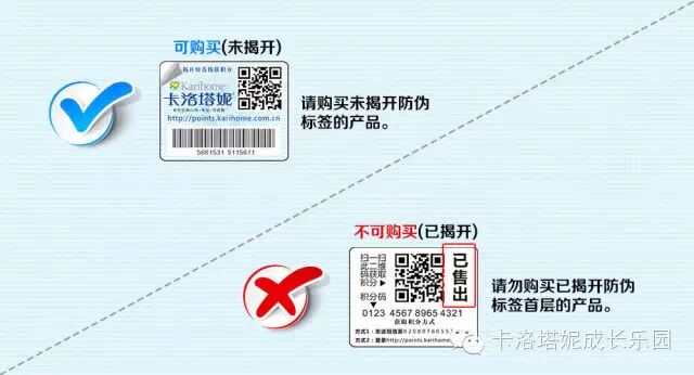 2、购买时请注意,一定要购买标贴完好未揭开的产品,如发现首层已被揭开,请勿购买,被揭开的防伪码已经失效,无法再进行积分。具体如下图所示: